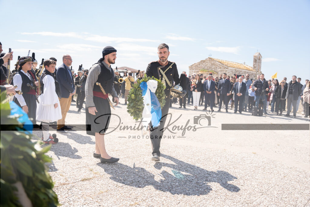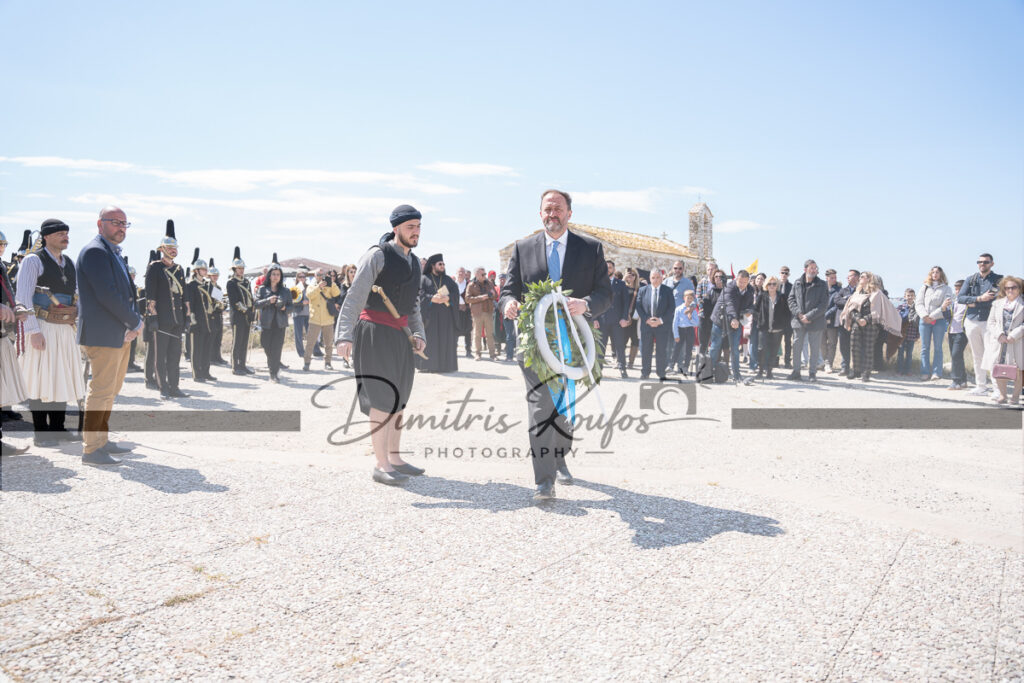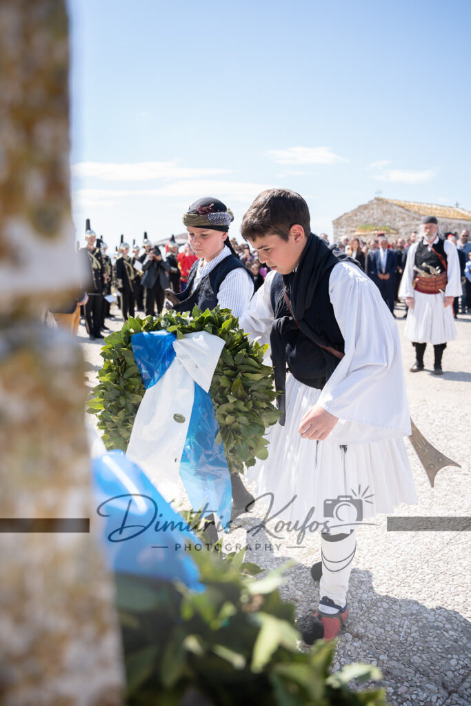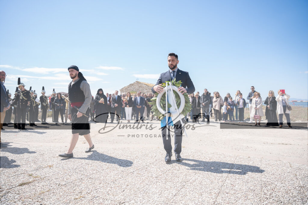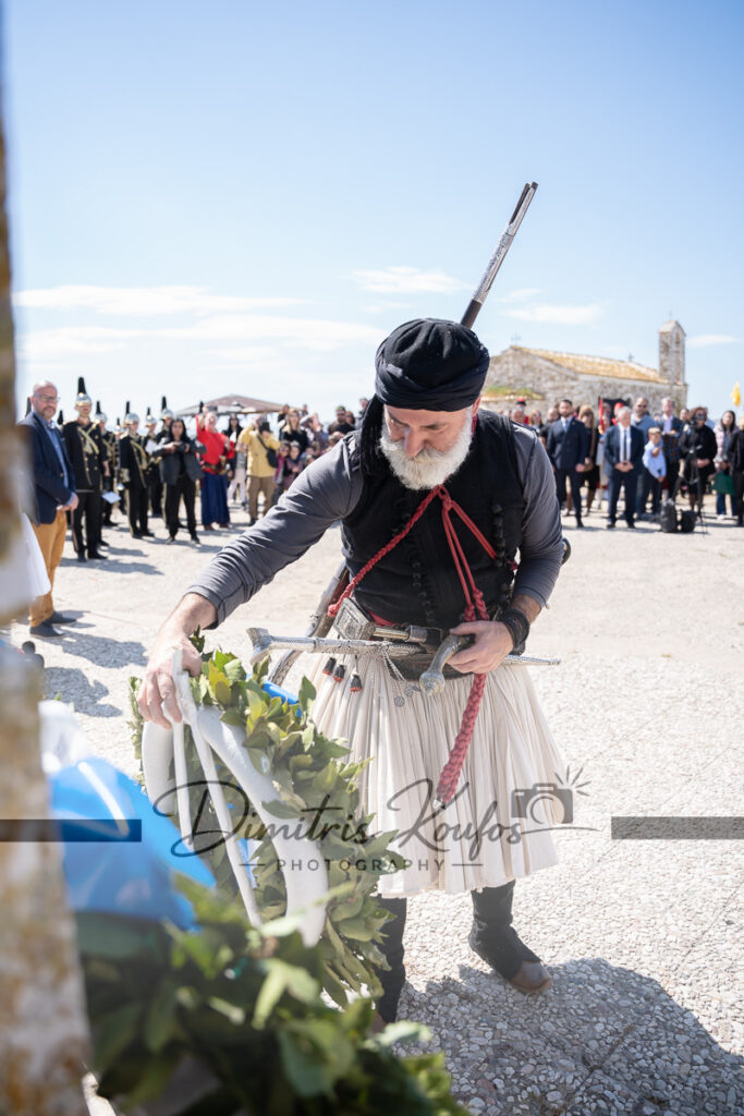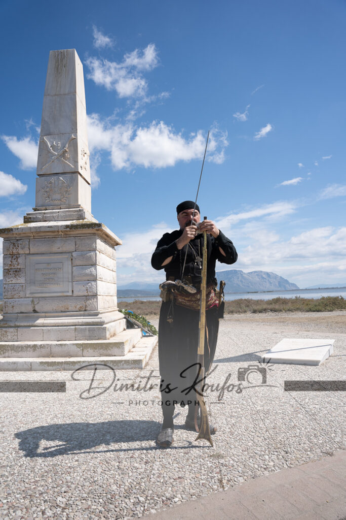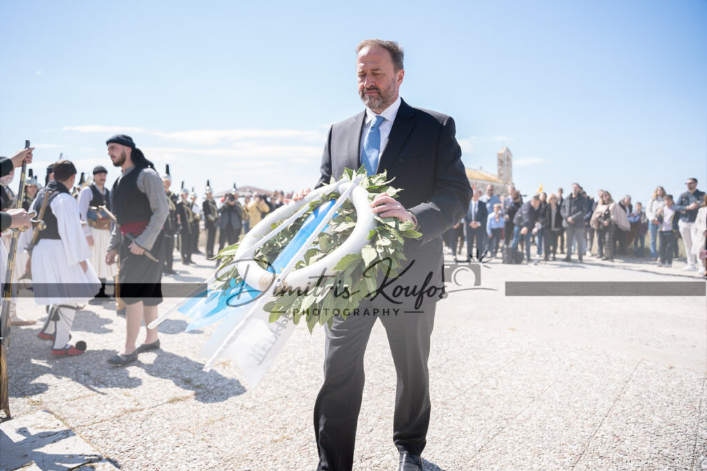 Ξεχωριστή στιγμή της εκδήλωσης αποτέλεσε η αφήγηση από τον καταξιωμένο ηθοποιό Λεωνίδα Κακούρη, ο οποίος με έντονο συναίσθημα και εκφραστικότητα «ζωντάνεψε» τα γεγονότα της 25ης Μαρτίου 1826, αναδεικνύοντας την αυτοθυσία και την ανδρεία των υπερασπιστών.