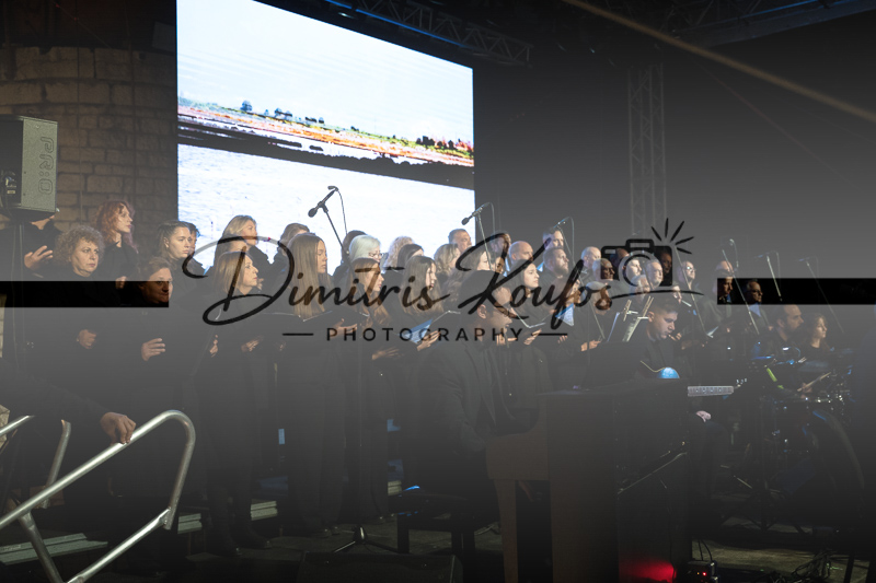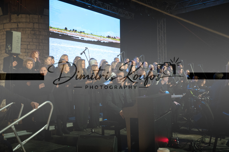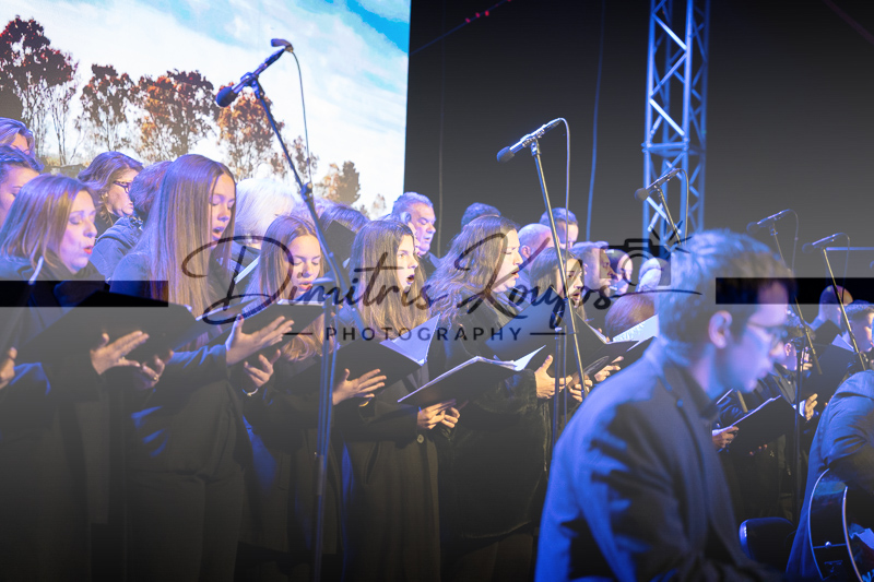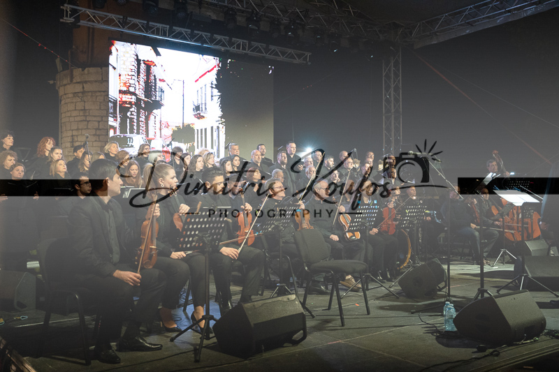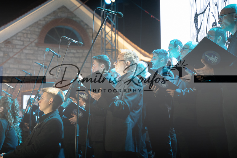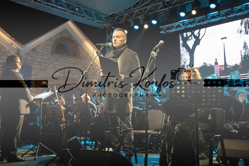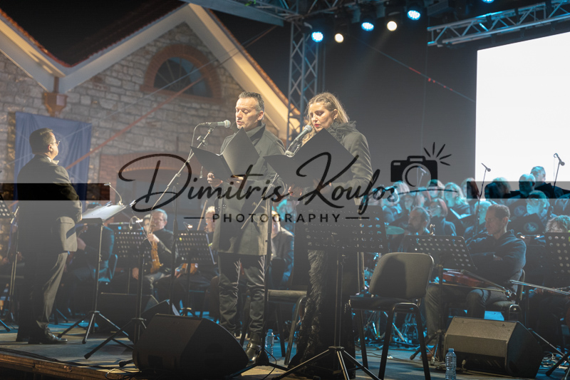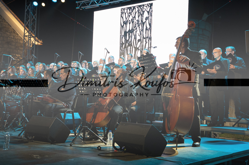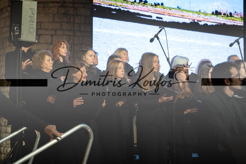 Ο σπουδαίος ερμηνευτής Δημήτρης Μπάσης, με την επιβλητική φωνή του, καθήλωσε το κοινό πλαισιωμένος από τις εξαιρετικές φωνές της Χορωδίας του Δήμου Ιεράς Πόλεως Μεσολογγίου. Η καλλιτεχνική διεύθυνση του Σπύρου Χολέβα κατάφερε να συντονίσει με μαεστρία το μουσικό αυτό ταξίδι, αναδεικνύοντας το υψηλό επίπεδο των τοπικών καλλιτεχνικών δυνάμεων.