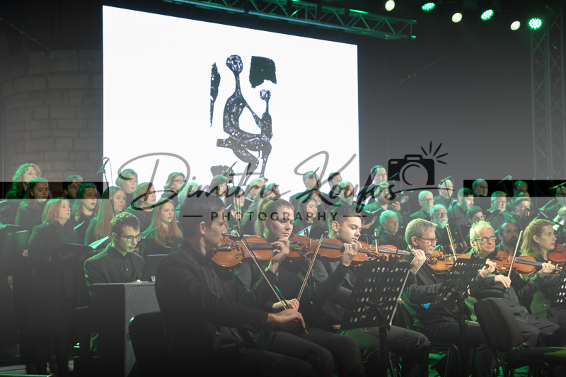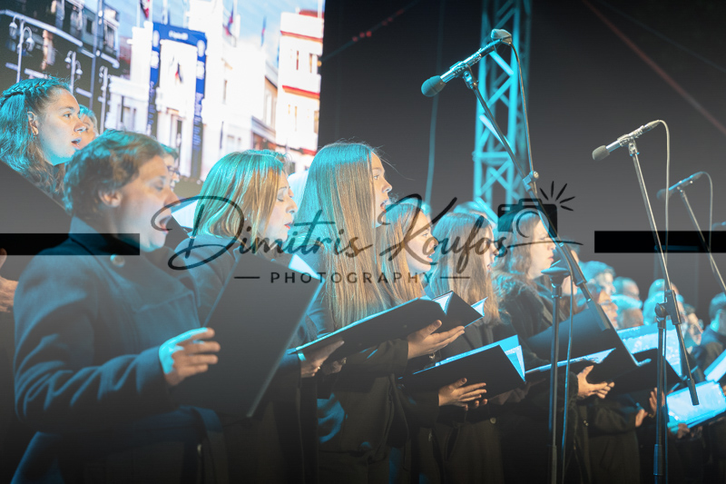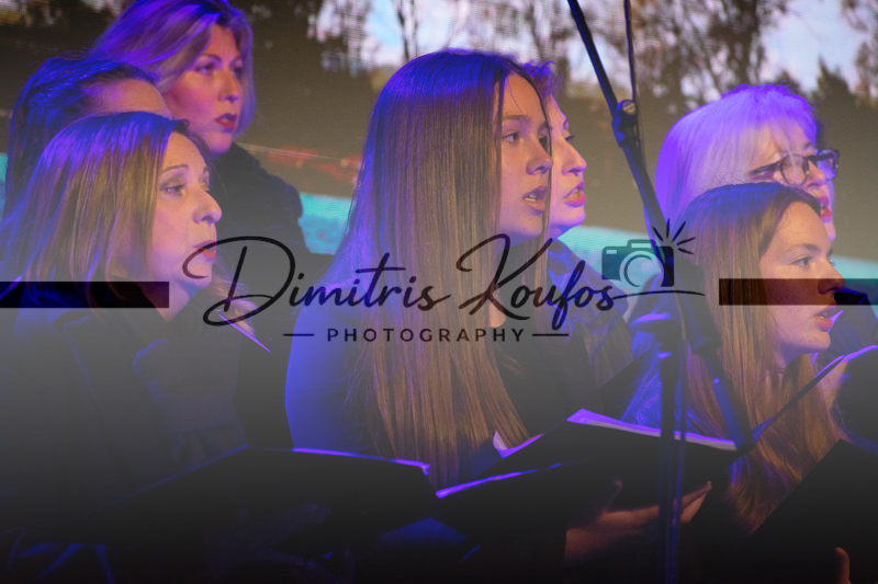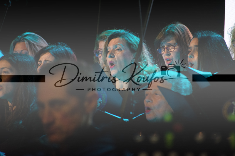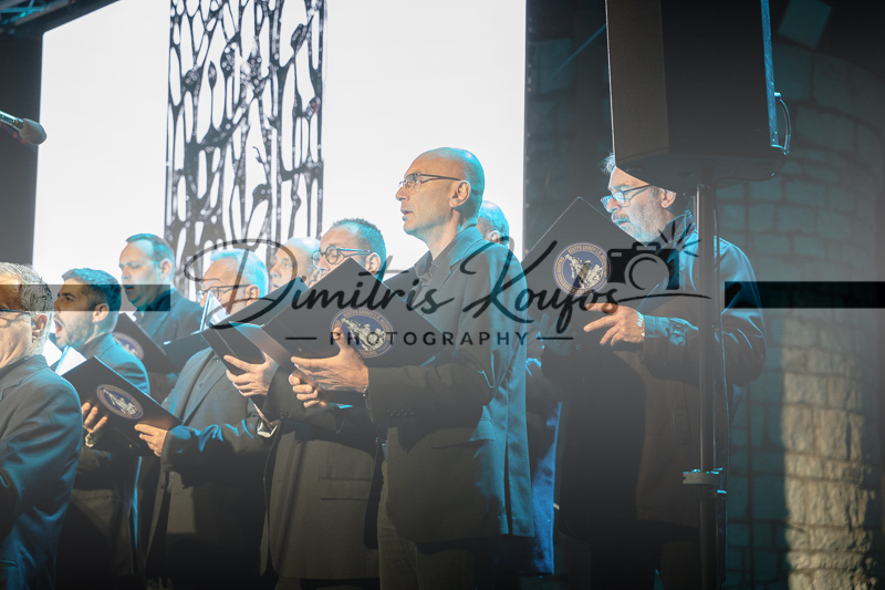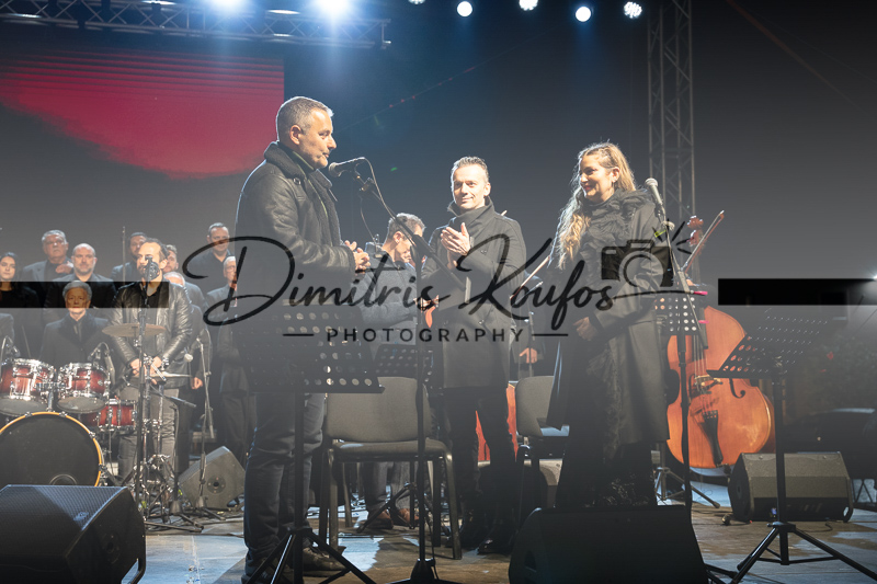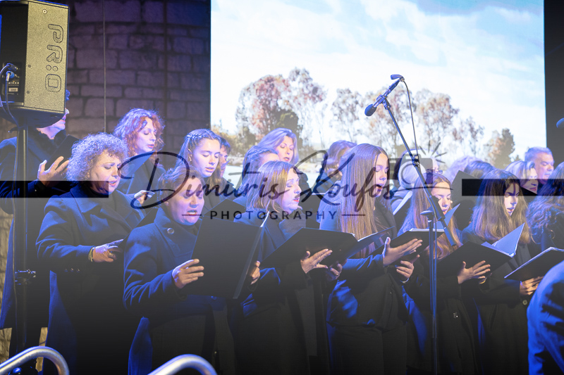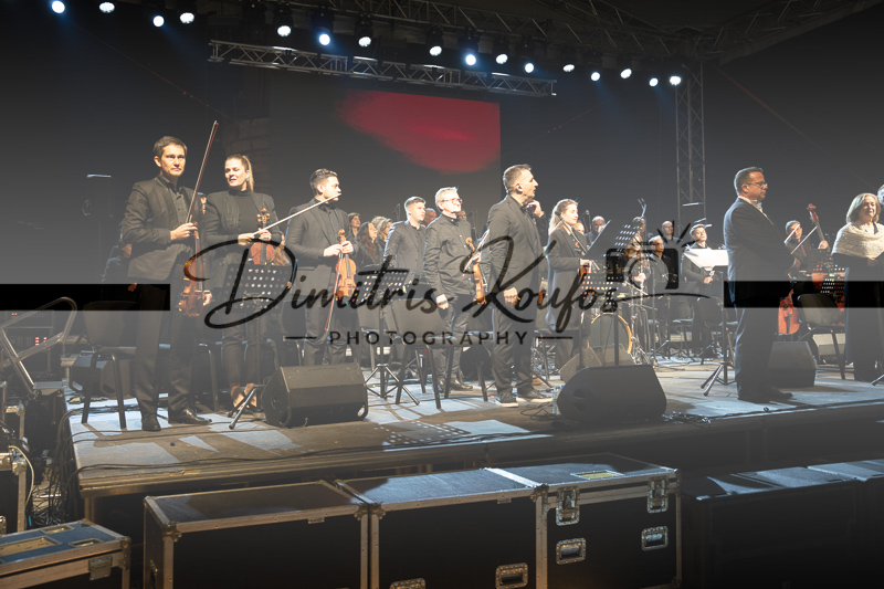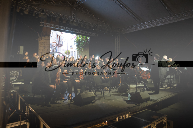 Ο σπουδαίος ερμηνευτής Δημήτρης Μπάσης, με την επιβλητική φωνή του, καθήλωσε το κοινό πλαισιωμένος από τις εξαιρετικές φωνές της Χορωδίας του Δήμου Ιεράς Πόλεως Μεσολογγίου. Η καλλιτεχνική διεύθυνση του Σπύρου Χολέβα κατάφερε να συντονίσει με μαεστρία το μουσικό αυτό ταξίδι, αναδεικνύοντας το υψηλό επίπεδο των τοπικών καλλιτεχνικών δυνάμεων.