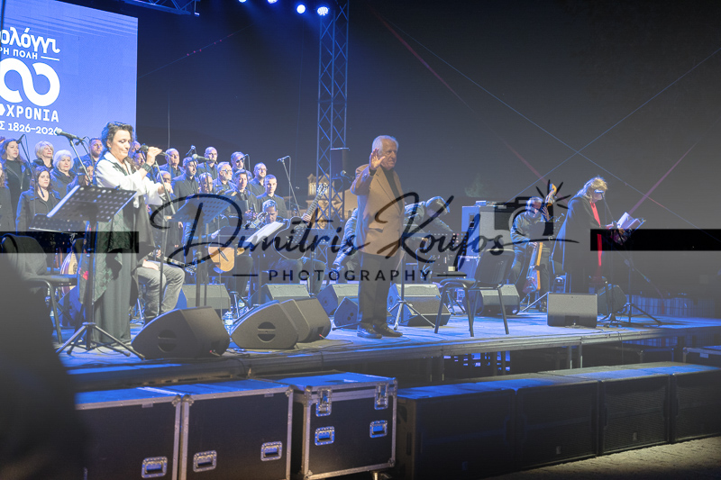 Υπό τη εμπνευσμένη διεύθυνση του ίδιου του συνθέτη, η βραδιά εξελίχθηκε σε μια μυσταγωγική εμπειρία. Οι σπουδαίοι ερμηνευτές Μίλτος Πασχαλίδης, Ιωάννα Φόρτη και Κώστας Τριανταφυλλίδης έδωσαν φωνή στη μελοποιημένη ποίηση και τα κείμενα των Ρήγα Φεραίου, Διονυσίου Σολωμού και Μακρυγιάννη, μεταφέροντας στο κοινό τα διαχρονικά μηνύματα της ελευθερίας και της εθνικής παλιγγενεσίας. Ιδιαίτερα σημαντική ήταν η σύμπραξη της Χορωδίας του Δήμου Ιεράς Πόλεως Μεσολογγίου, υπό τη διδασκαλία του Σπύρου Χολέβα, η οποία πλαισίωσε ιδανικά τους σολίστ, προσδίδοντας στο έργο τη μεγαλοπρέπεια που αρμόζει στη Διακοσιοστή Επέτειο από την Έξοδο του Μεσολογγίου.